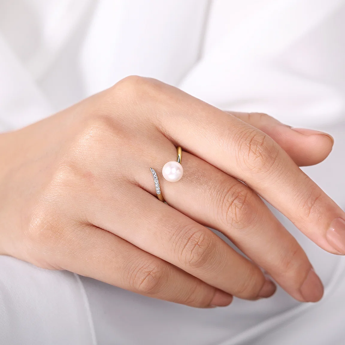 Pearl & Pave Diamond Bypass Ring