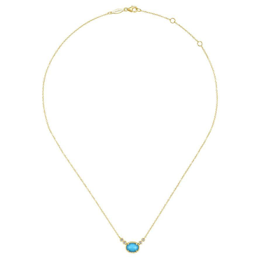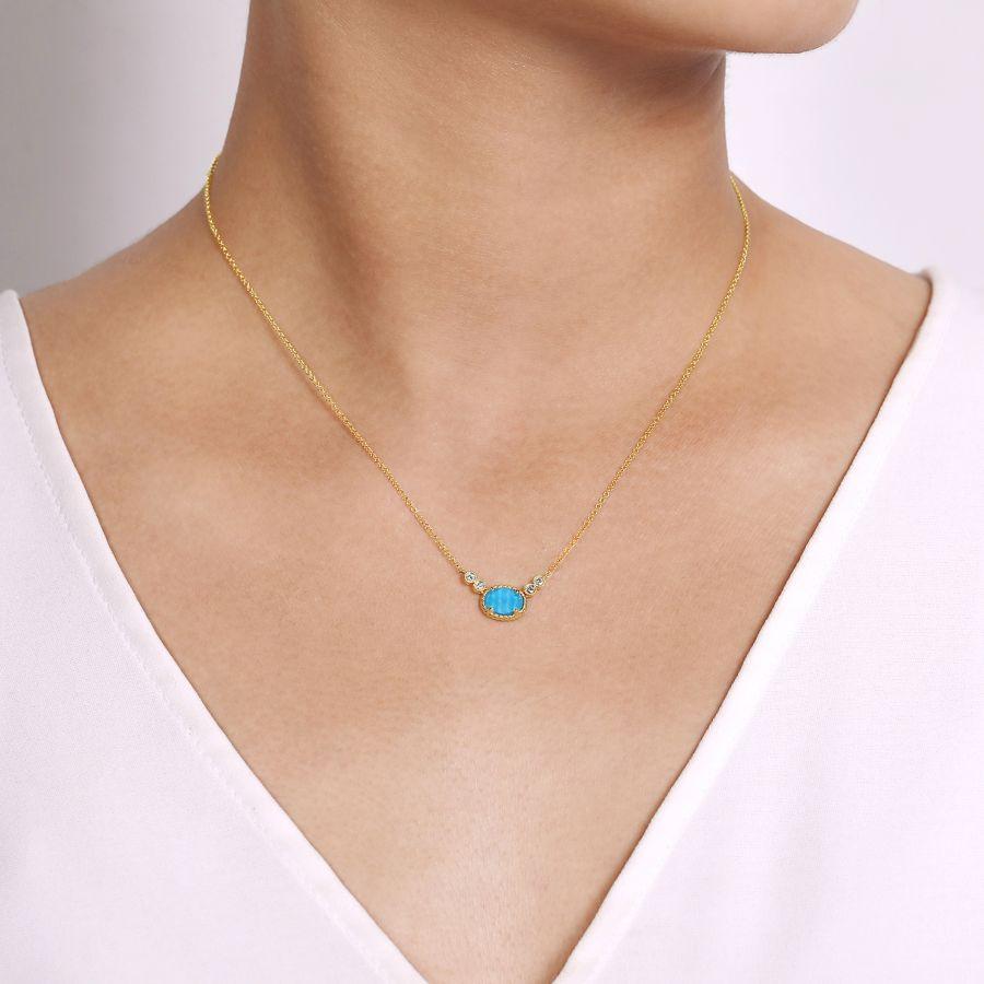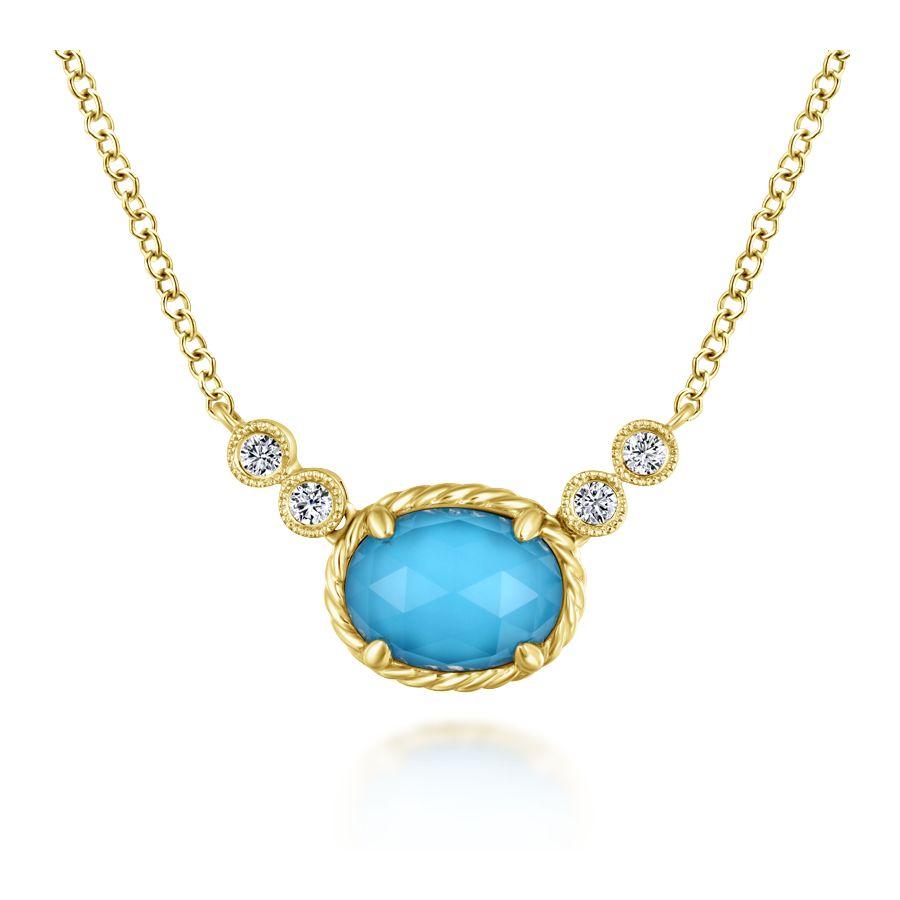 14KT .06CTW(O)TURQUOISE/PAVE DIAMOND NECKLACE(HORZ.SET)
