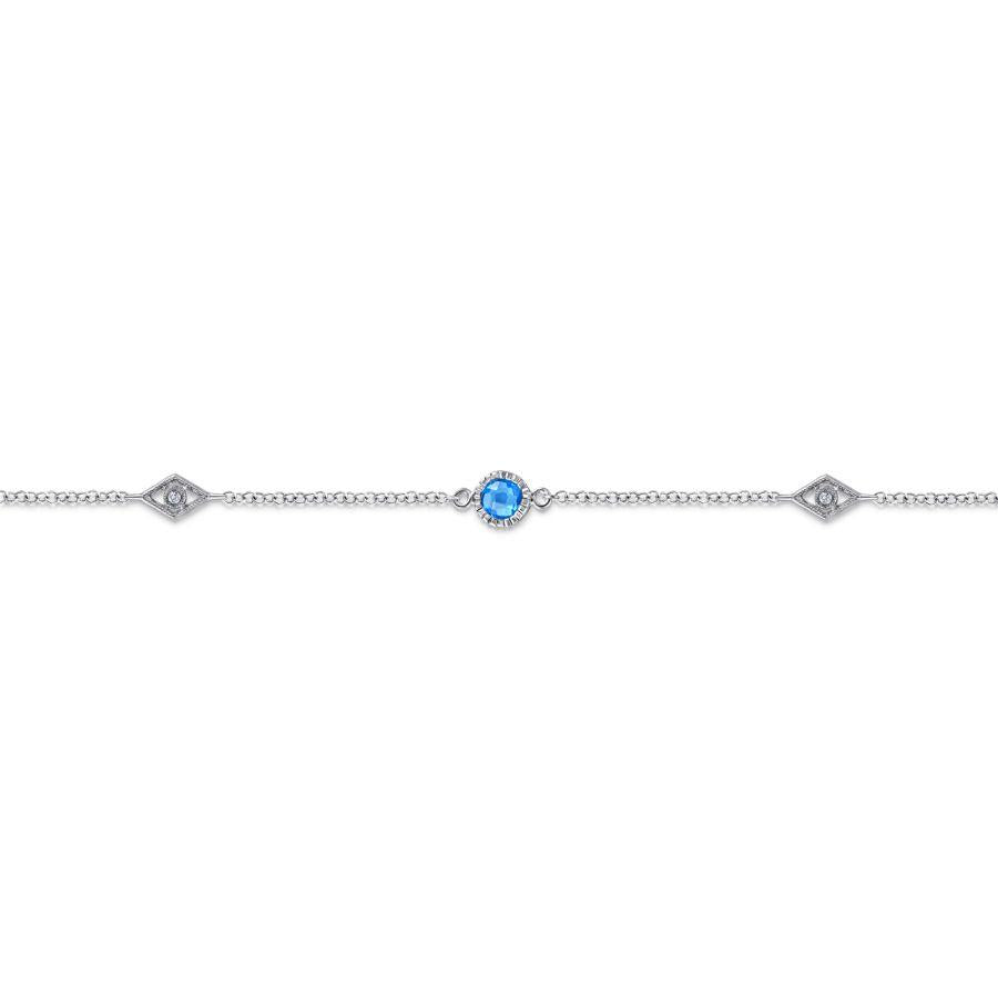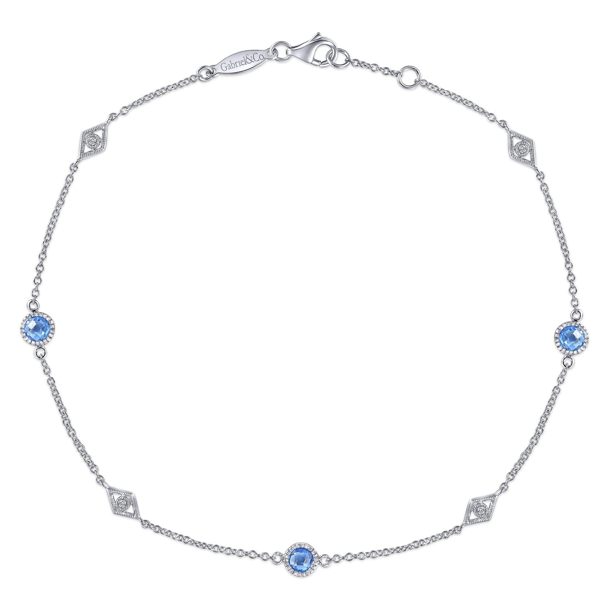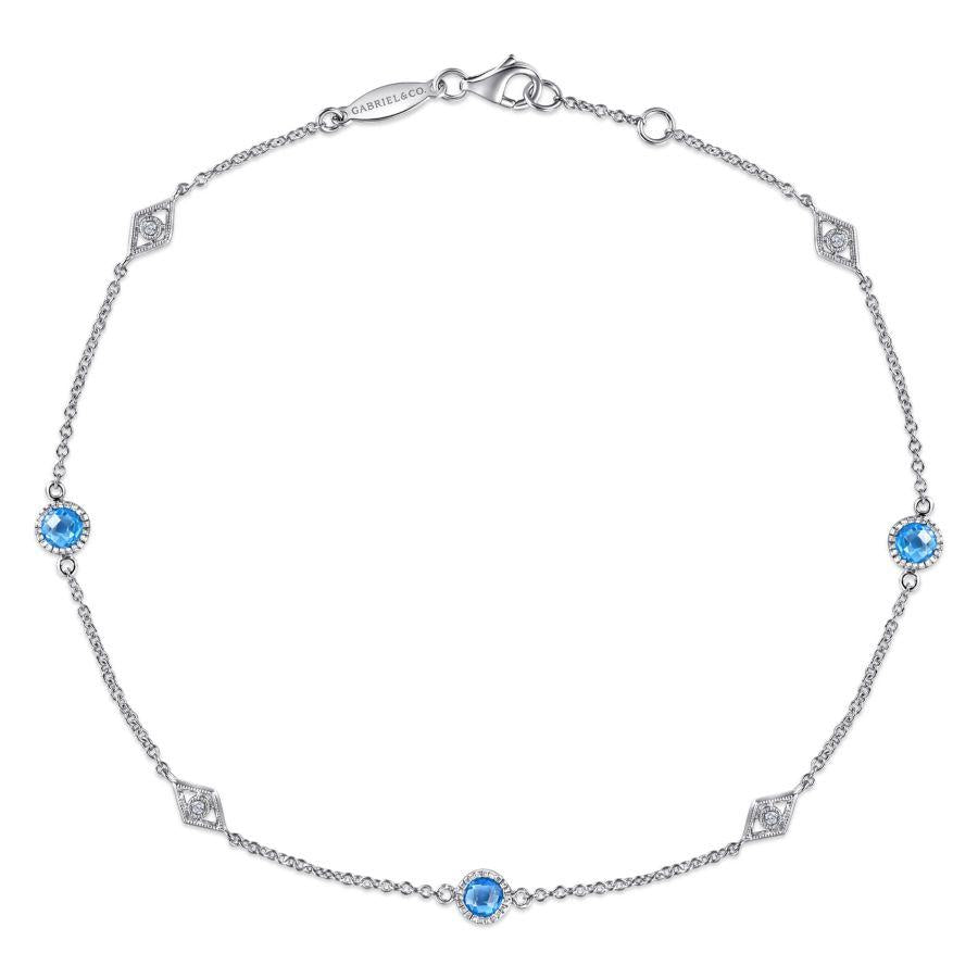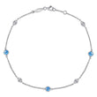 Sterling Silver Ankle Bracelet with Blue Topaz and White Sapphire Stations
