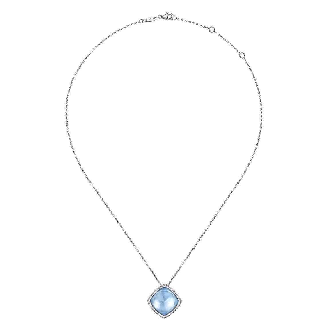 Sterling Silver Rock Crystal White Mother of Pearl Turquoise Pendant Necklace (17.5")