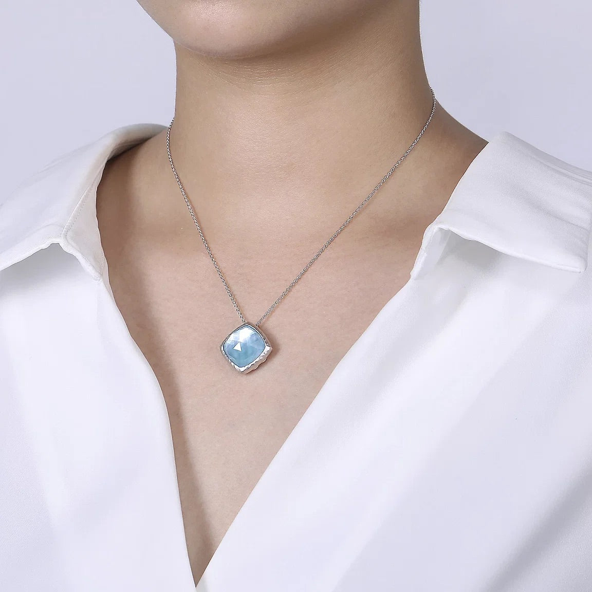 Sterling Silver Rock Crystal White Mother of Pearl Turquoise Pendant Necklace