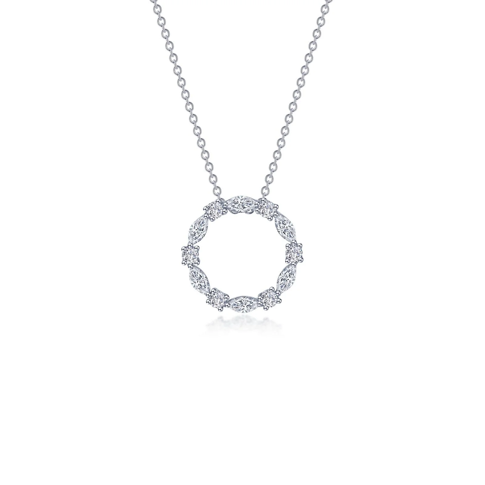 An elegant symbol of your endless love. This exquisite open circle necklace features Lafonn's signature Lassaire simulated diamonds in sterling silver bonded with platinum.