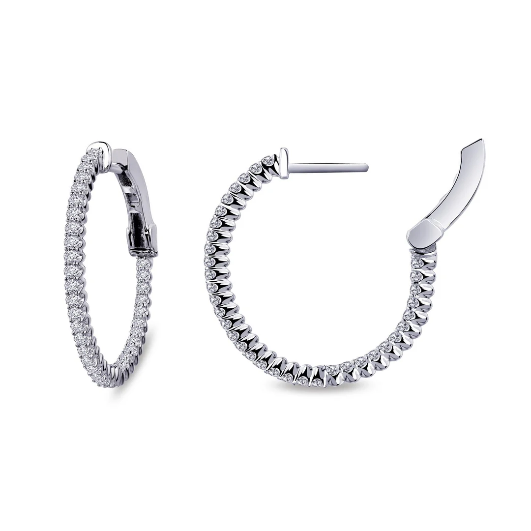 Fun and elegant. These inside out hoop earrings are set with Lafonn's signature Lassaire simulated diamonds in sterling silver bonded with platinum. 25 mm diameter