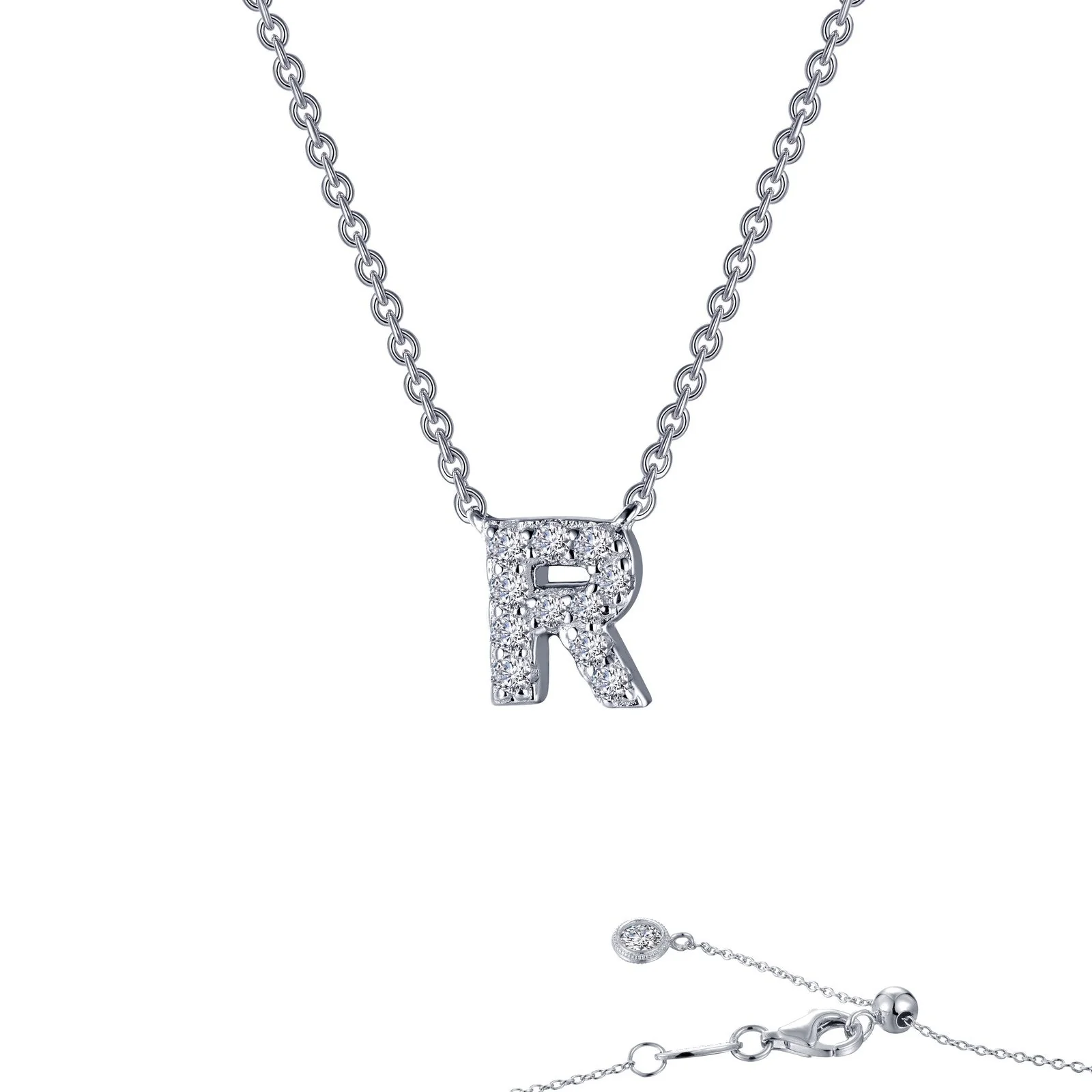 Delicate and sweet. This dainty adjustable designer block letter "R" necklace is set with Lafonn's signature Lassaire clear simulated diamonds in sterling silver bonded with platinum.