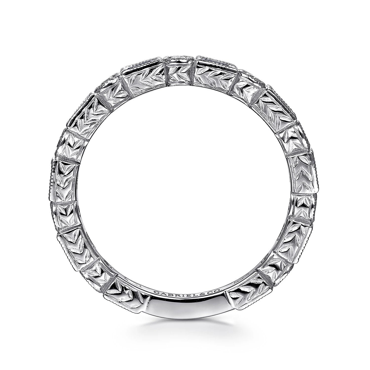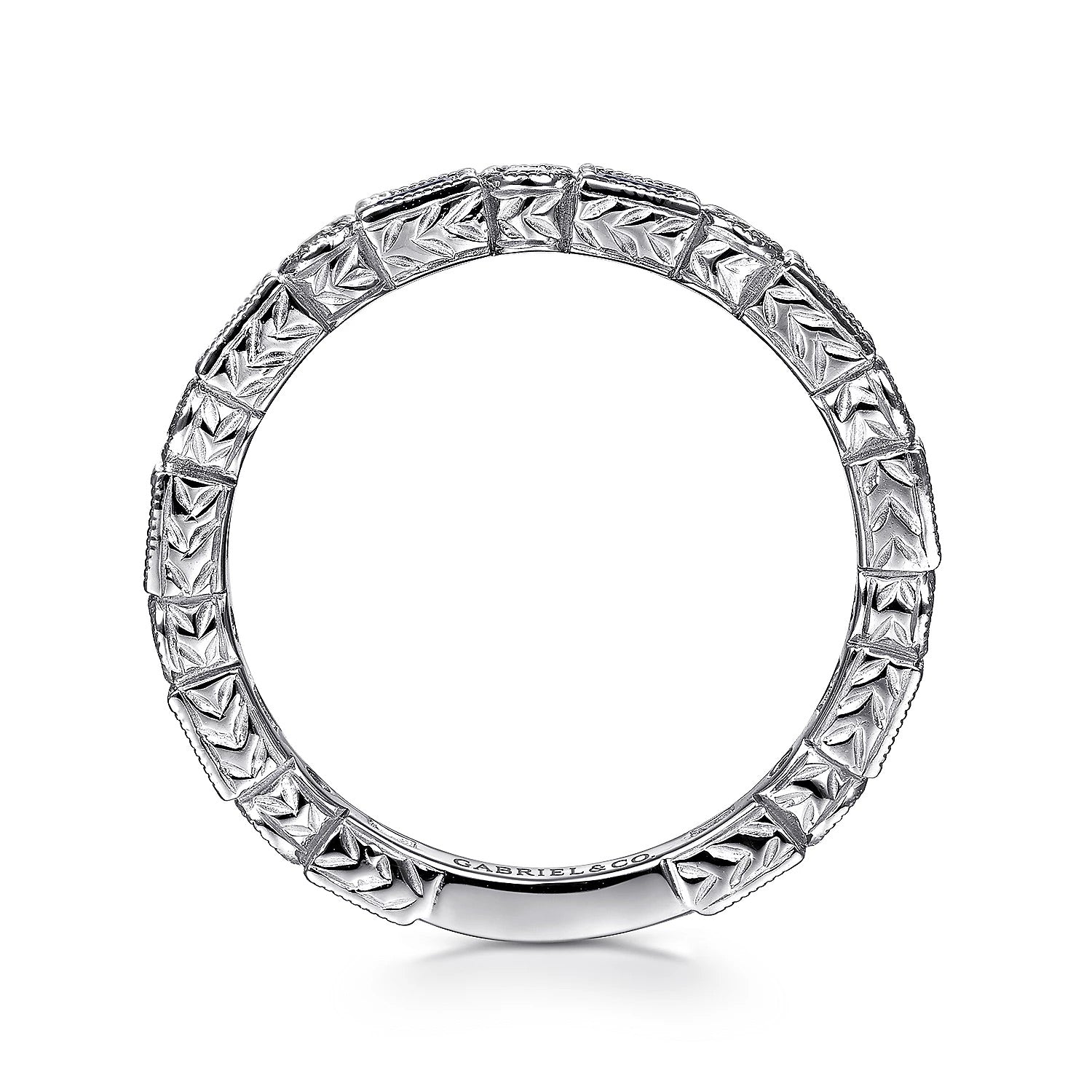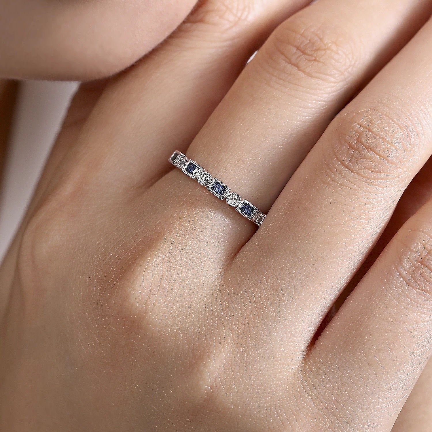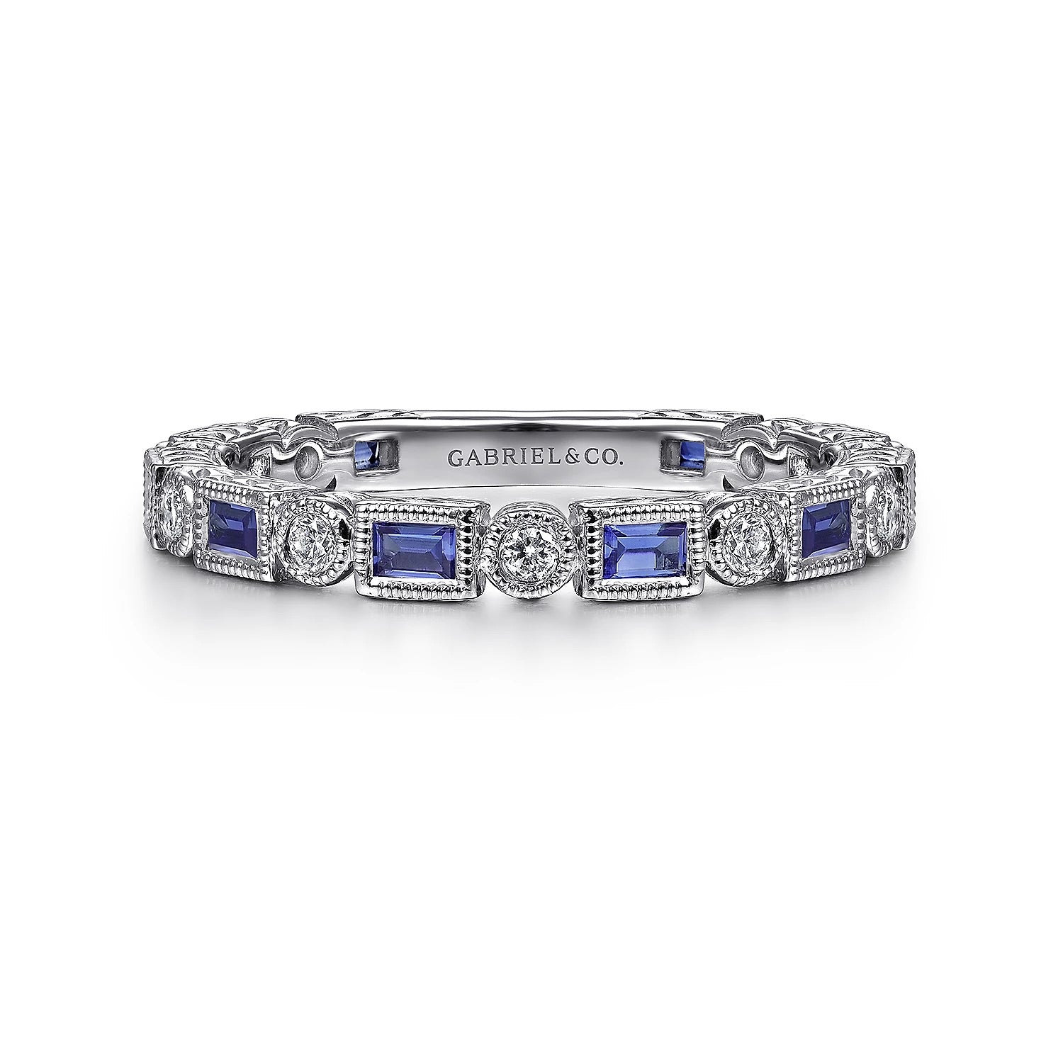 14K White Gold Sapphire Baguette and Diamond Round Stackable Ring