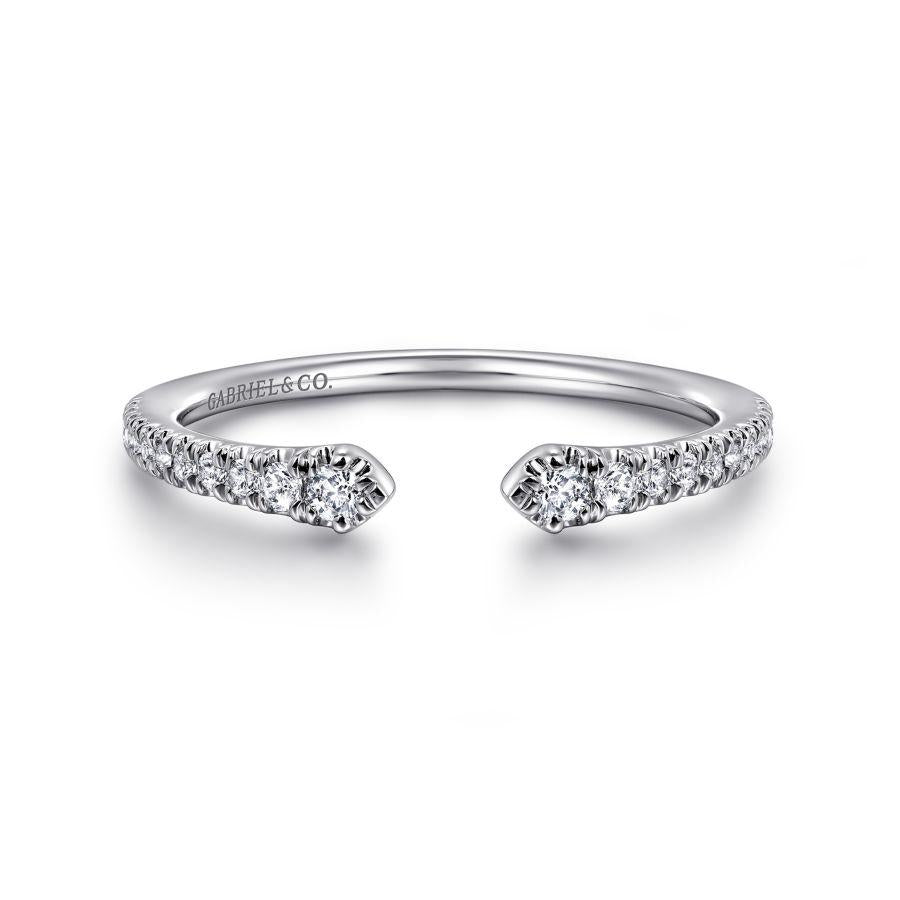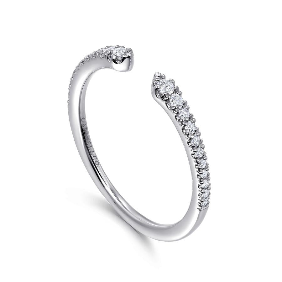 14K White Gold Open Graduated Diamond Stackable Ladies Ring