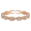 Luminous 14K rose gold ring designed for stacking featuring brilliant 0.10ct diamonds. Marquise shapes create a scalloped silhouette, elevated with milgrain borders and engraving along the profile of the stackable band.
