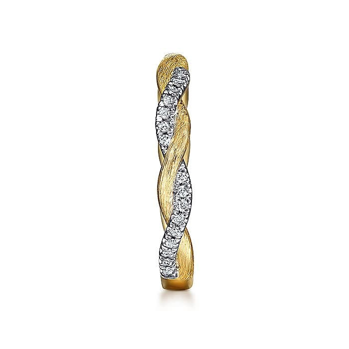 14K Yellow Gold Twisted Diamond Stackable Ring