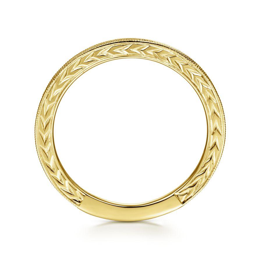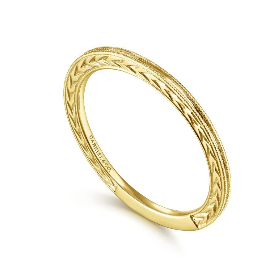 14k Yellow Gold Engraved Milgrain Slim Stackable Ring