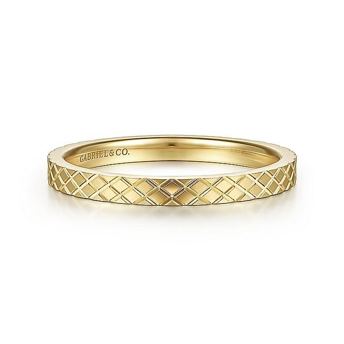 A checkerboard pattern gives 14K yellow gold stackable ring an modern flair. Wear it individually or use it to add variety to your signature ring stack.