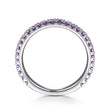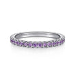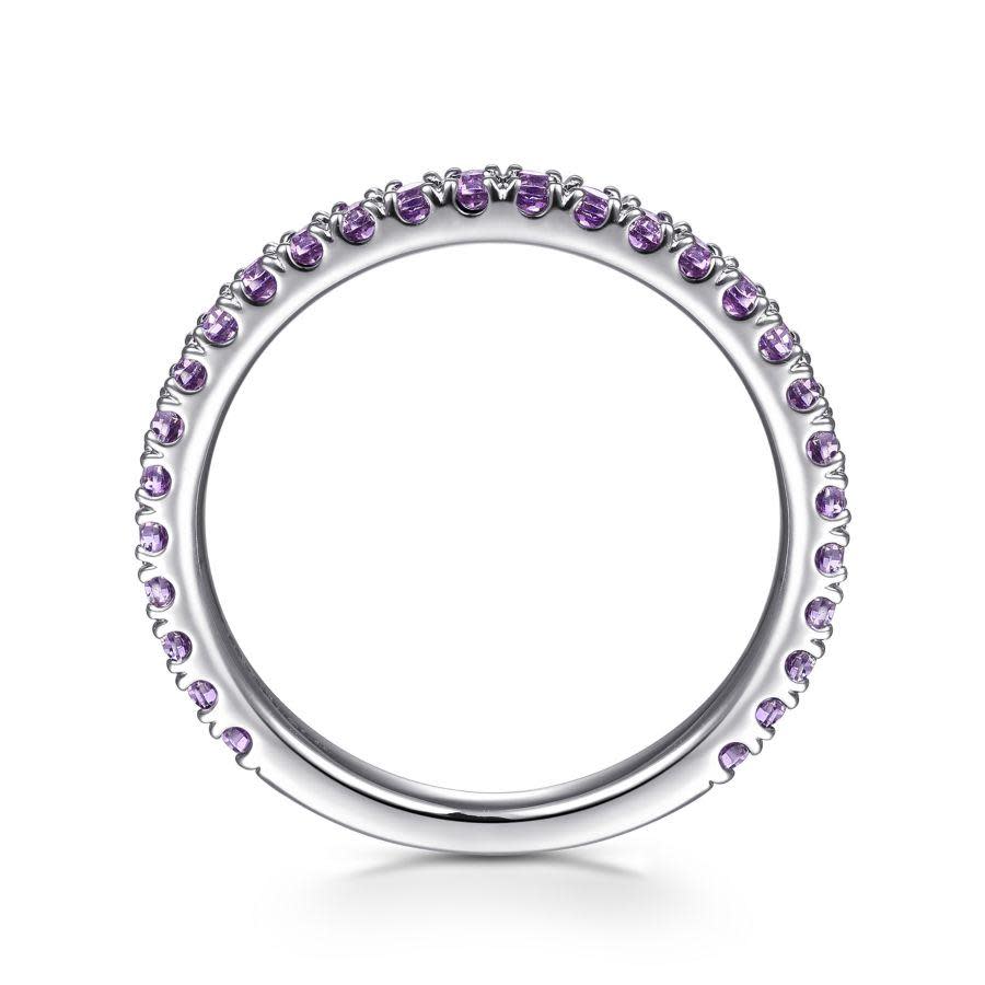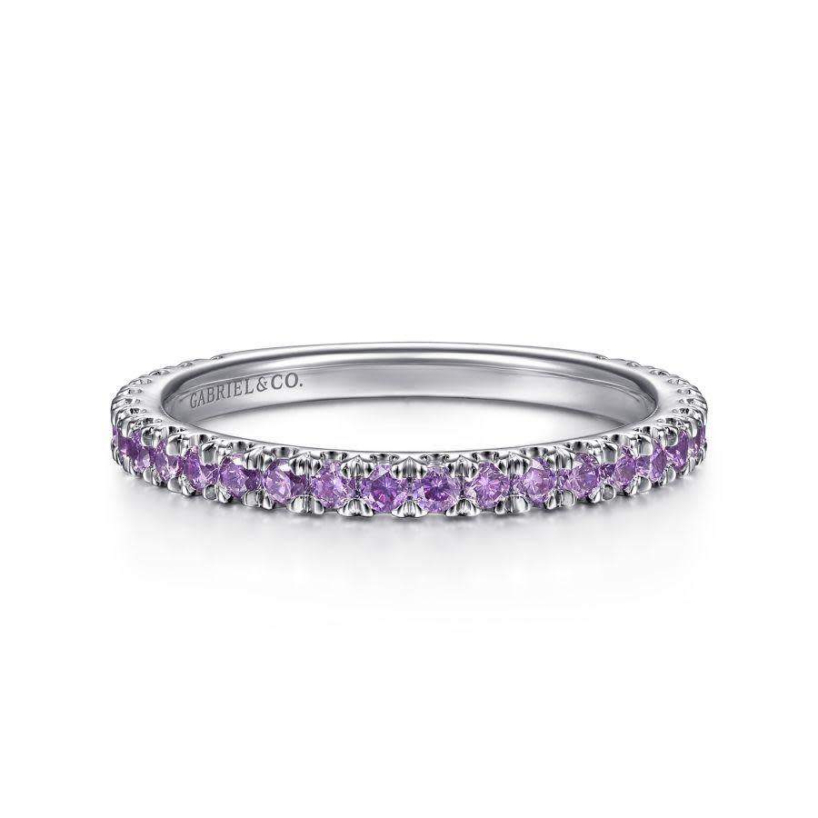 A timeless stackable ring with a sleek straight silhouette and dozens of glamorous amethysts. Crafted from luxe 14K white gold, this February birthstone ring effuses any ensemble with a pop of vibrant purple color.