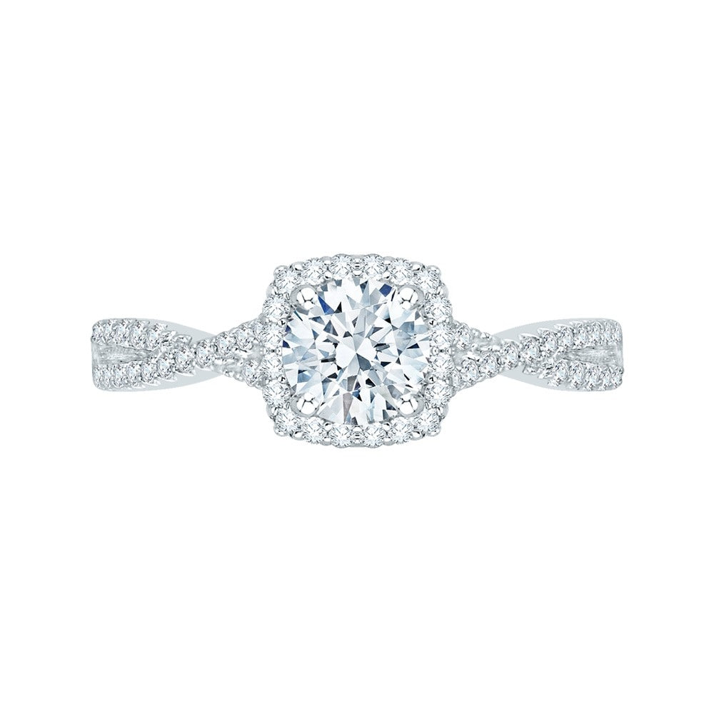 14K White Gold Round Diamond with Halo and Twisted Band Engagement Ring